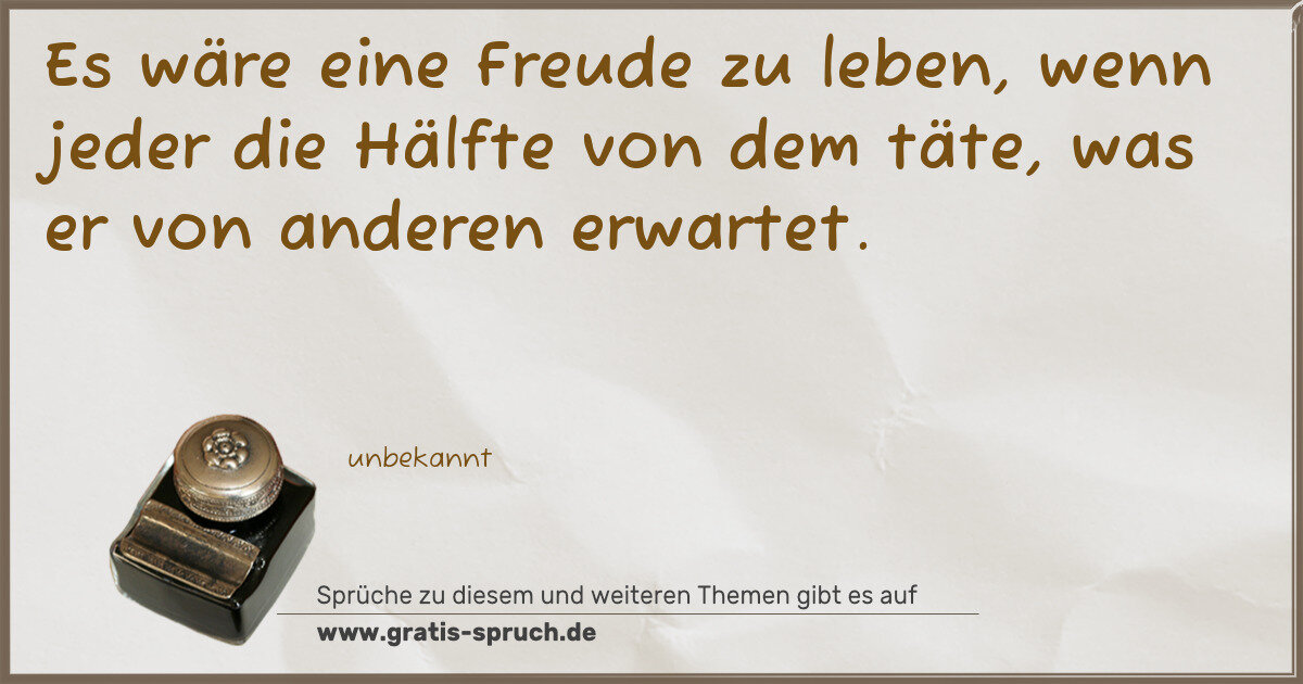 Es wäre eine Freude zu leben, wenn jeder die Hälfte von dem täte, was er von anderen erwartet.