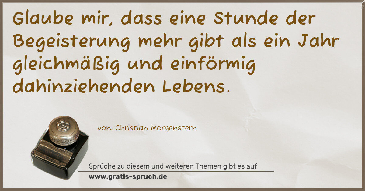 Glaube mir, dass eine Stunde der Begeisterung mehr gibt als ein Jahr gleichmäßig und einförmig dahinziehenden Lebens.