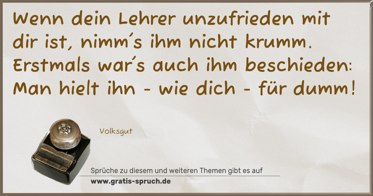 Wenn dein Lehrer unzufrieden mit dir ist, nimm's ihm nicht krumm. Erstmals war's auch ihm beschieden: Man hielt ihn - wie dich - für dumm!