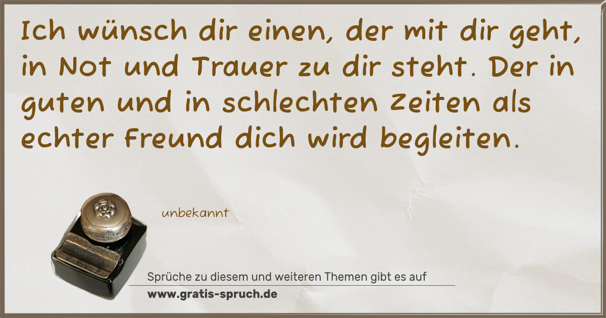 Ich wünsch dir einen, der mit dir geht, in Not und Trauer zu dir steht. Der in guten und in schlechten Zeiten als echter Freund dich wird begleiten.