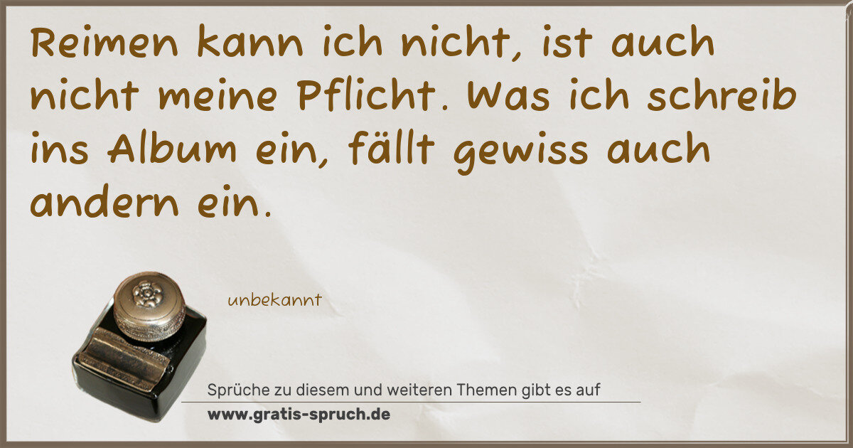 Reimen kann ich nicht, ist auch nicht meine Pflicht. Was ich schreib ins Album ein, fällt gewiss auch andern ein.