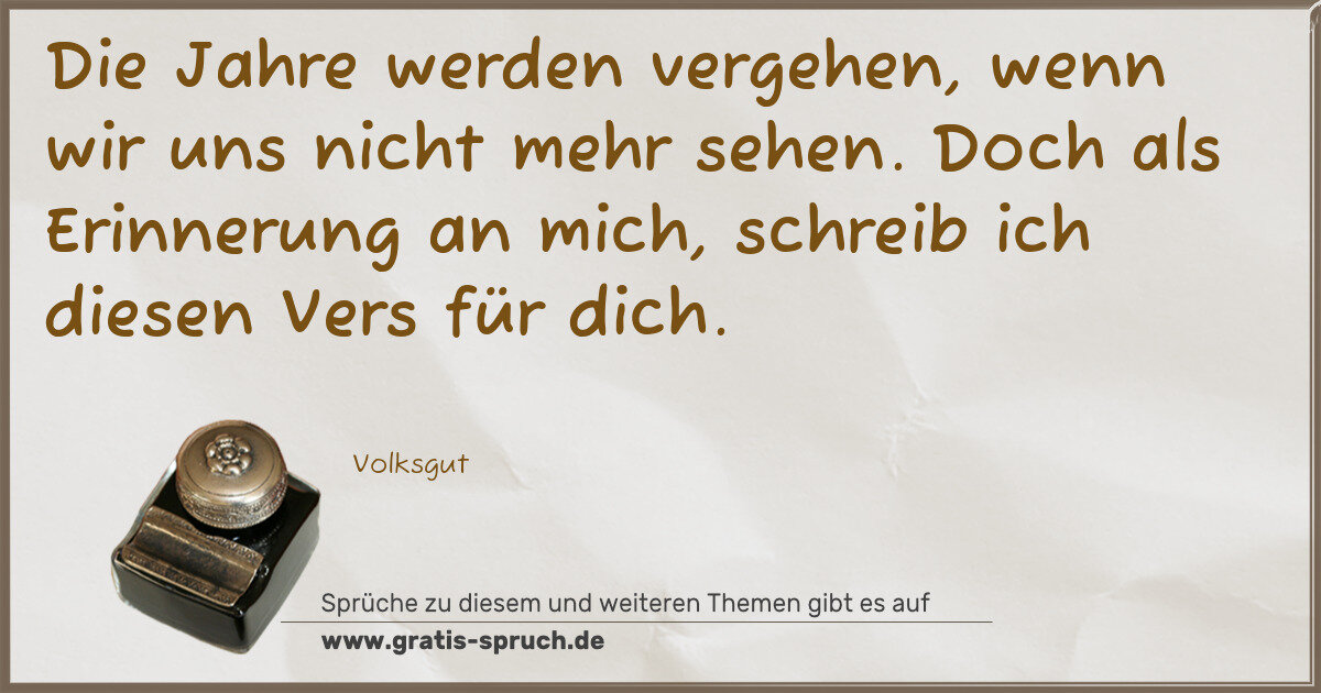 Die Jahre werden vergehen, wenn wir uns nicht mehr sehen. Doch als Erinnerung an mich, schreib ich diesen Vers für dich.