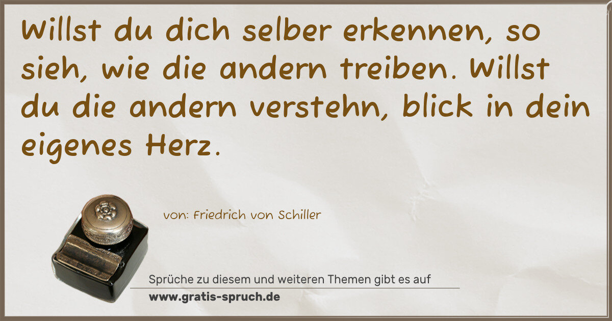 Willst du dich selber erkennen, so sieh, wie die andern treiben. Willst du die andern verstehn, blick in dein eigenes Herz.