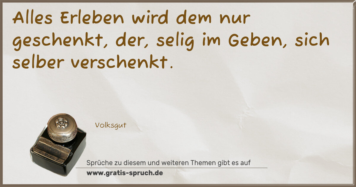 Alles Erleben wird dem nur geschenkt, der, selig im Geben, sich selber verschenkt.