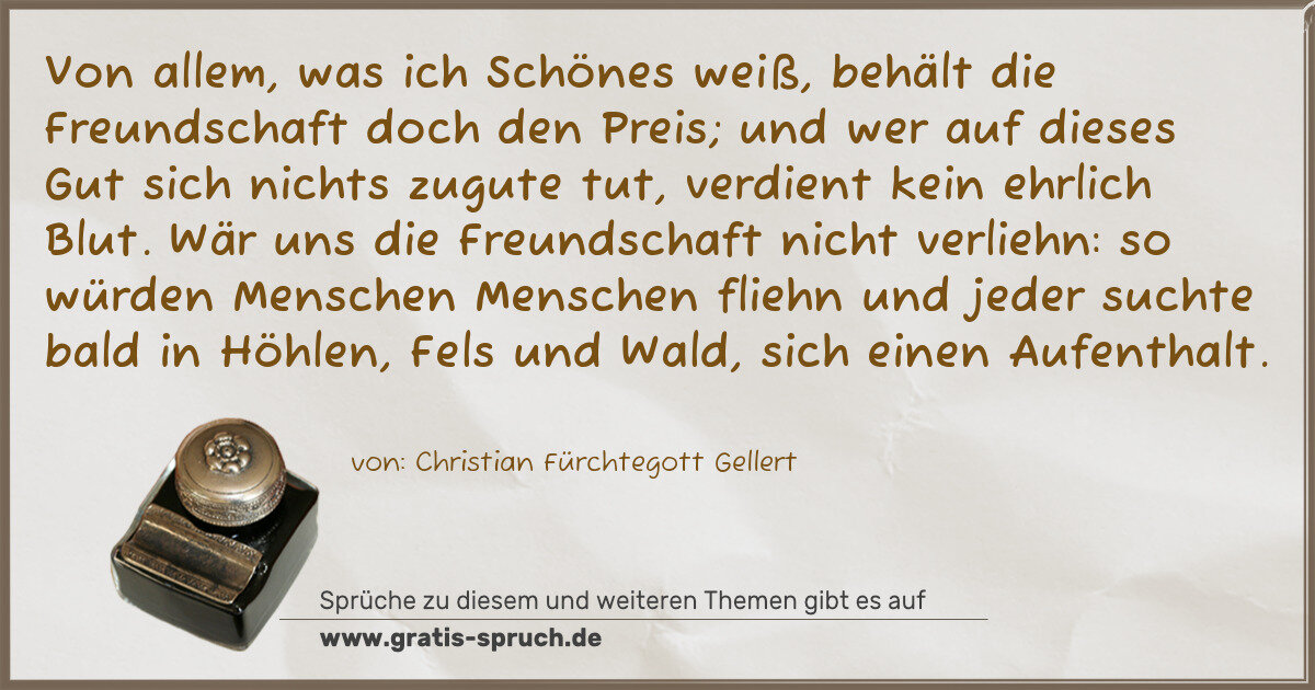 Wär uns die Freundschaft nicht verliehn: so würden Menschen Menschen fliehn und jeder suchte bald