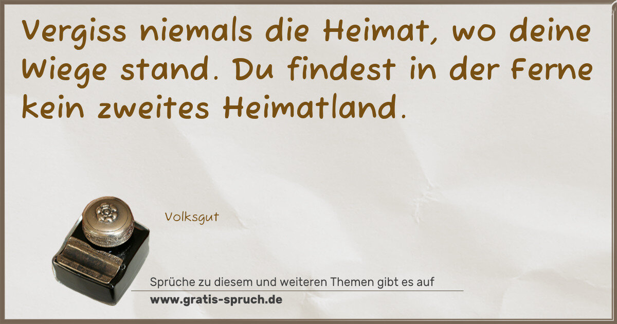 Vergiss niemals die Heimat, wo deine Wiege stand. Du findest in der Ferne kein zweites Heimatland.