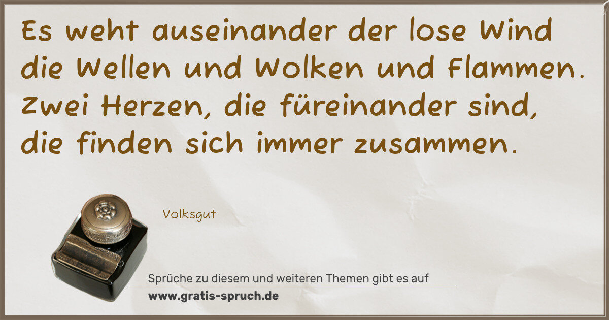 Es weht auseinander der lose Wind die Wellen und Wolken und Flammen. Zwei Herzen, die füreinander sind, die finden sich immer zusammen.