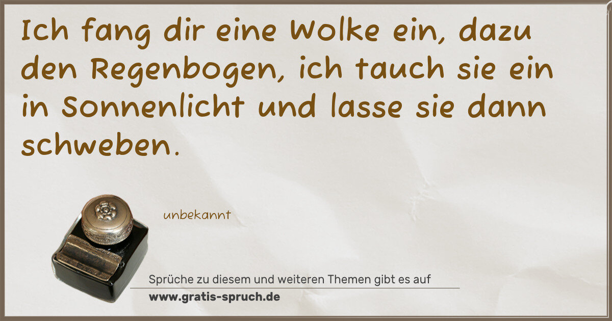 Ich fang dir eine Wolke ein, dazu den Regenbogen, ich tauch sie ein in Sonnenlicht und lasse sie dann schweben.