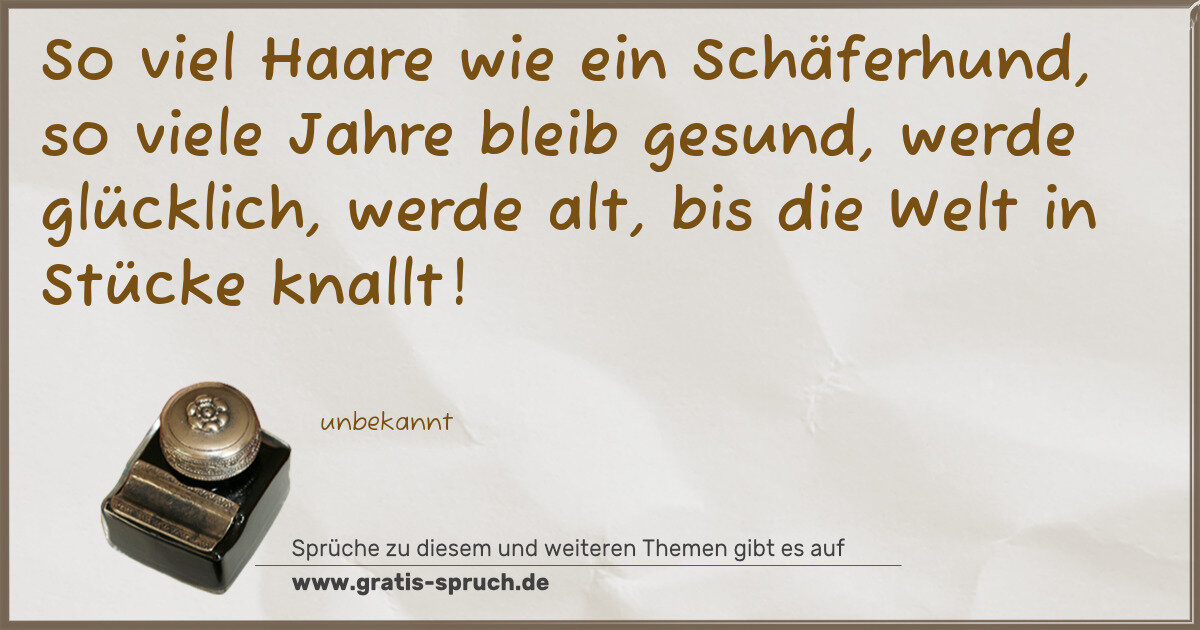 So viel Haare wie ein Schäferhund, so viele Jahre bleib gesund, werde glücklich, werde alt, bis die Welt in Stücke knallt!