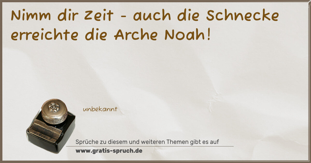Nimm dir Zeit - auch die Schnecke erreichte die Arche Noah!