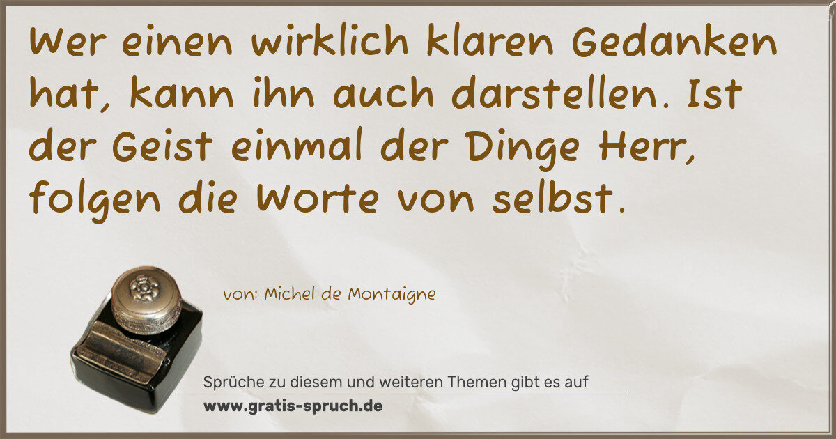 Wer einen wirklich klaren Gedanken hat, kann ihn auch darstellen. Ist der Geist einmal der Dinge Herr, folgen die Worte von selbst.