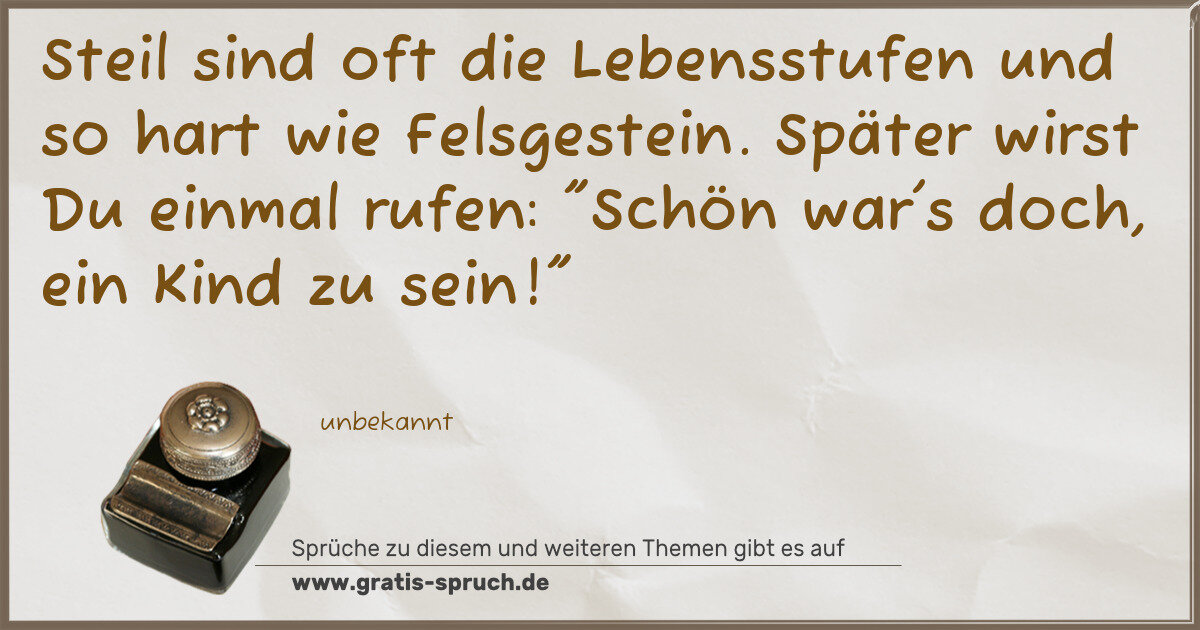 Steil sind oft die Lebensstufen und so hart wie Felsgestein. Später wirst Du einmal rufen: "Schön war's doch, ein Kind zu sein!"