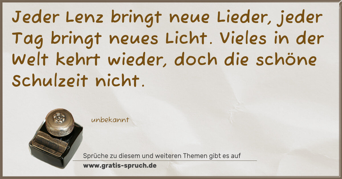 Jeder Lenz bringt neue Lieder, jeder Tag bringt neues Licht. Vieles in der Welt kehrt wieder, doch die schöne Schulzeit nicht.