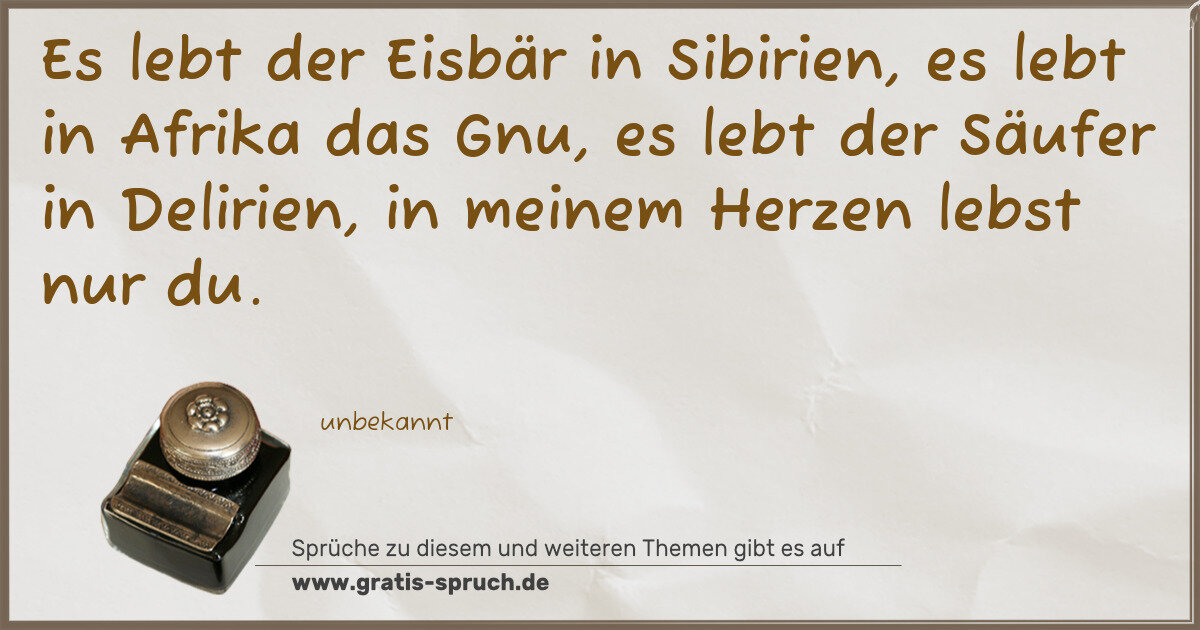 Es lebt der Eisbär in Sibirien, es lebt in Afrika das Gnu, es lebt der Säufer in Delirien, in meinem Herzen lebst nur du.
