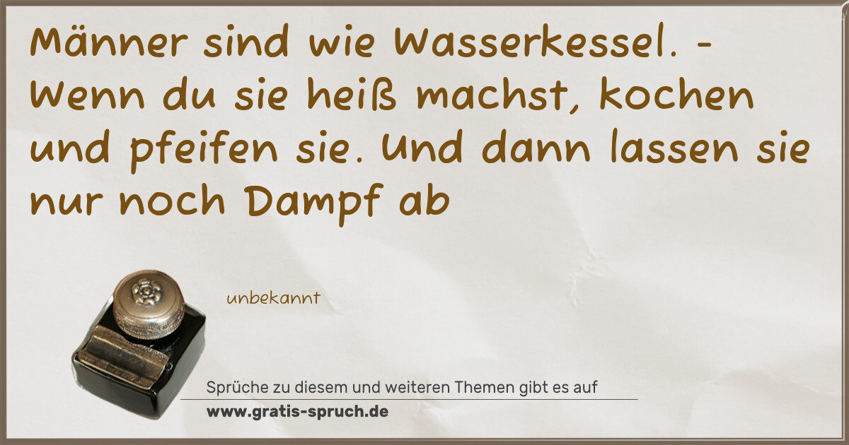 Männer sind wie Wasserkessel. - Wenn du sie heiß machst, kochen und pfeifen sie. Und dann lassen sie nur noch Dampf ab
