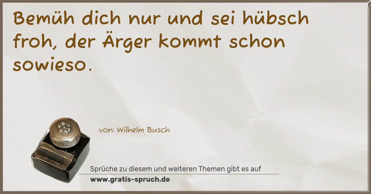 Bemüh dich nur und sei hübsch froh, der Ärger kommt schon sowieso.