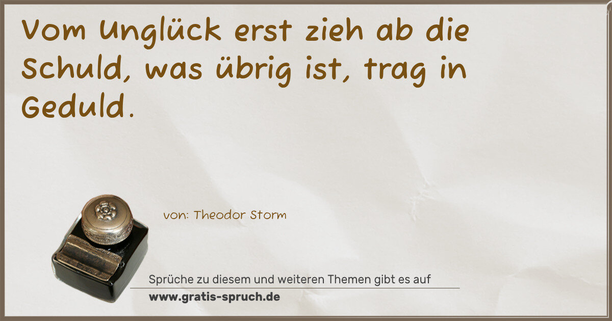 Vom Unglück erst zieh ab die Schuld, was übrig ist, trag in Geduld.