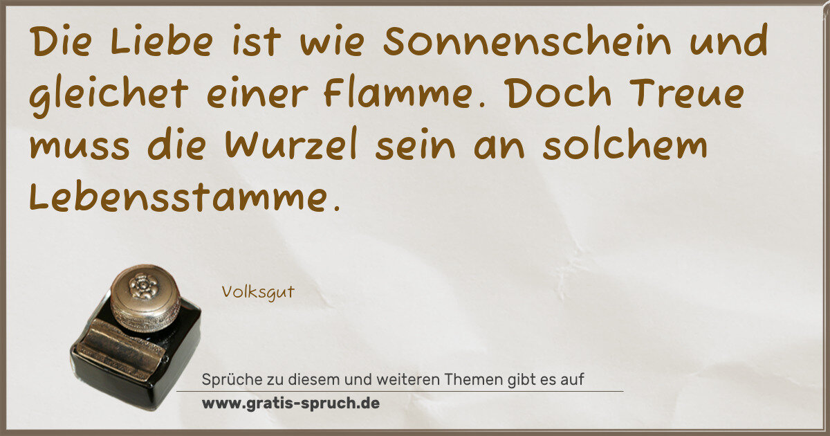 Die Liebe ist wie Sonnenschein und gleichet einer Flamme. Doch Treue muss die Wurzel sein an solchem Lebensstamme.