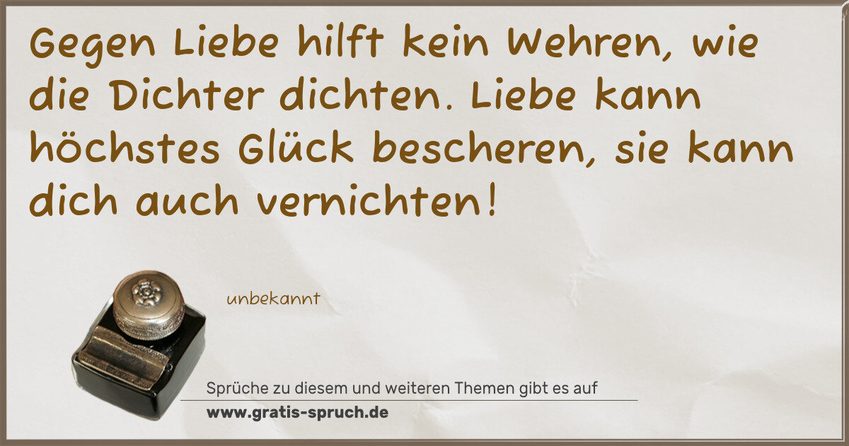 Gegen Liebe hilft kein Wehren, wie die Dichter dichten. Liebe kann höchstes Glück bescheren, sie kann dich auch vernichten!