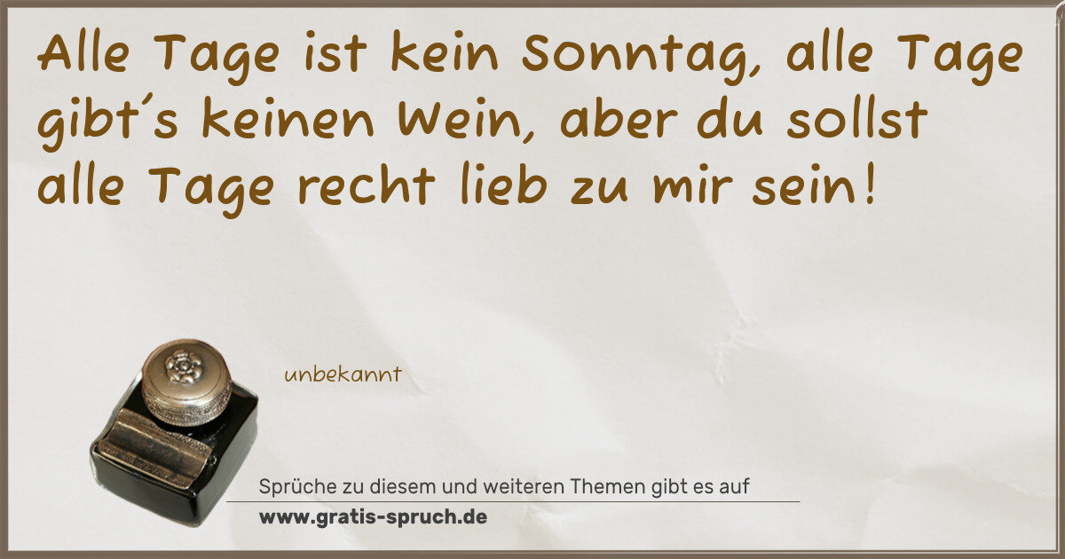 Alle Tage ist kein Sonntag, alle Tage gibt's keinen Wein, aber du sollst alle Tage recht lieb zu mir sein!