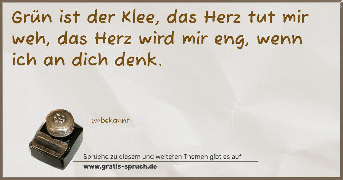 Grün ist der Klee, das Herz tut mir weh, das Herz wird mir eng, wenn ich an dich denk.