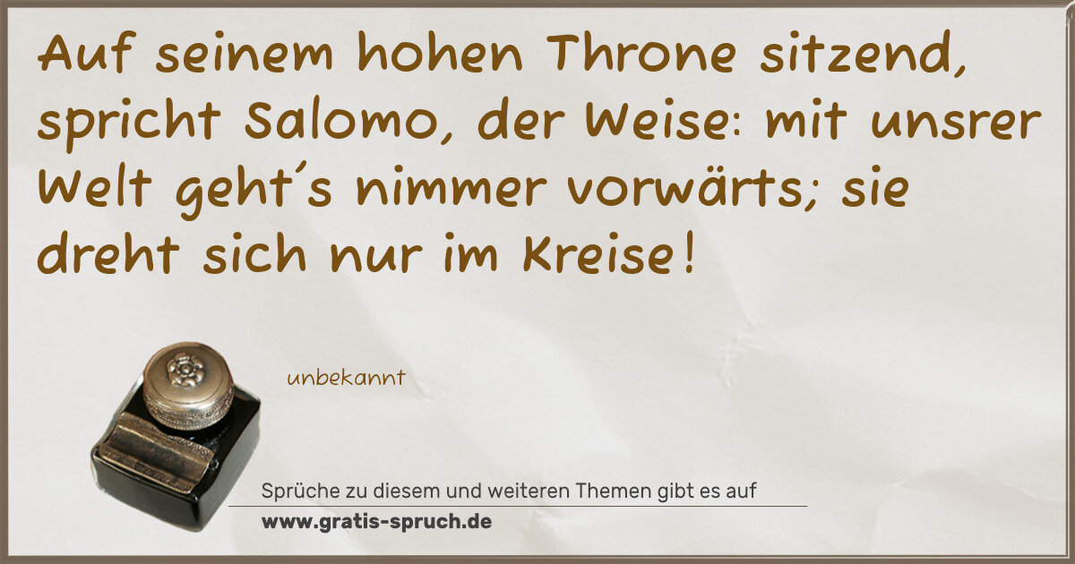 Auf seinem hohen Throne sitzend, spricht Salomo, der Weise: mit unsrer Welt geht's nimmer vorwärts; sie dreht sich nur im Kreise!