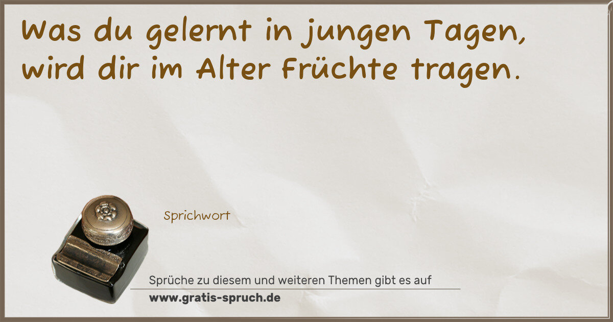 Was du gelernt in jungen Tagen, wird dir im Alter Früchte tragen.