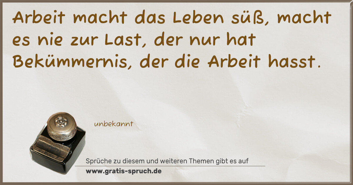 Arbeit macht das Leben süß, macht es nie zur Last, der nur hat Bekümmernis, der die Arbeit hasst.