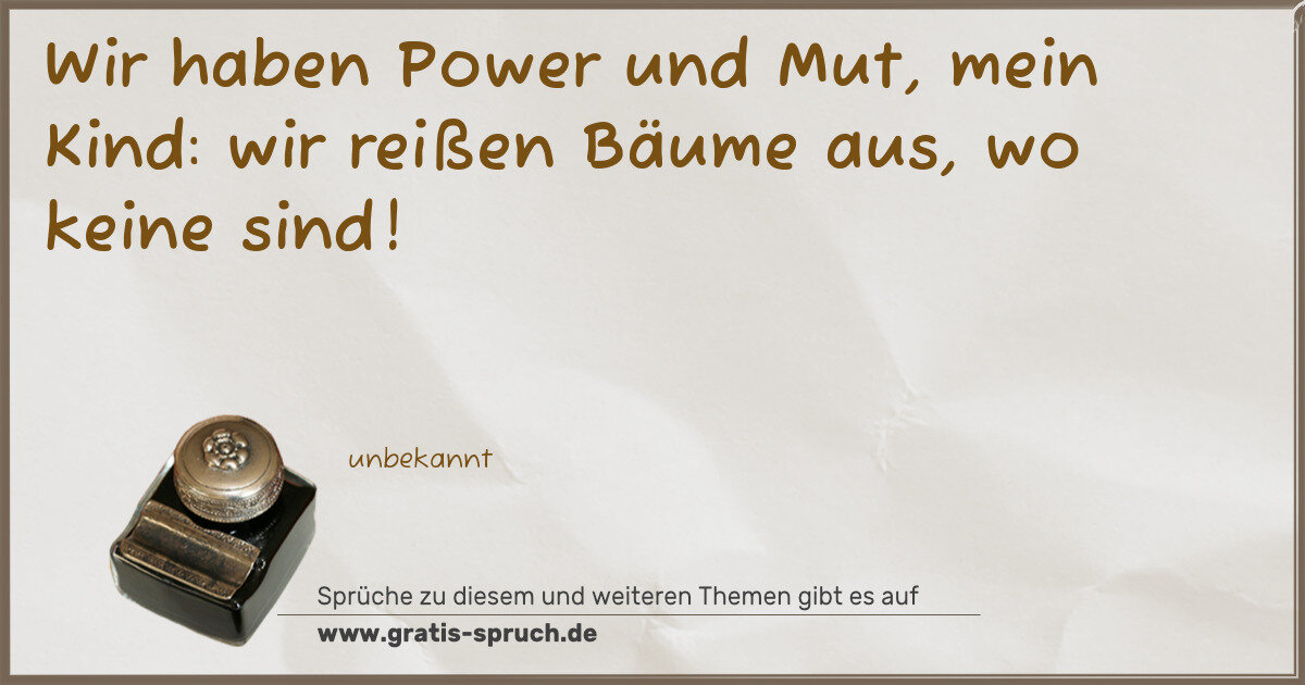 Wir haben Power und Mut, mein Kind: wir reißen Bäume aus, wo keine sind!