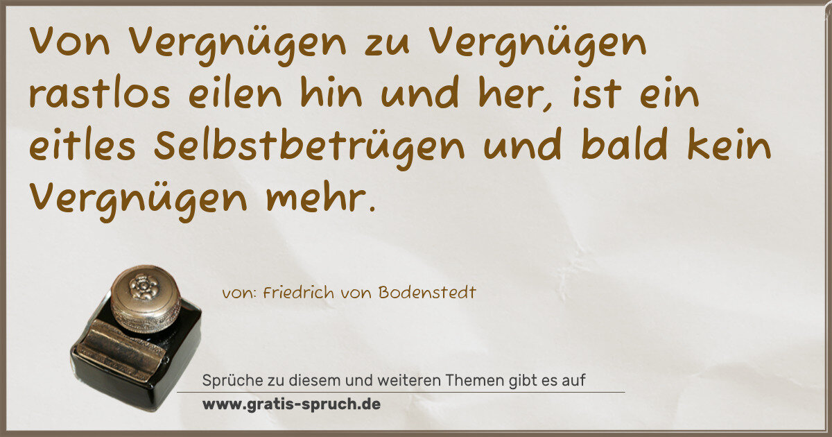 Von Vergnügen zu Vergnügen rastlos eilen hin und her, ist ein eitles Selbstbetrügen und bald kein Vergnügen mehr.