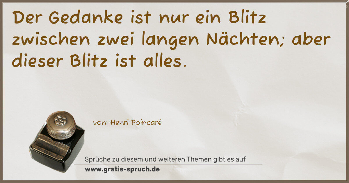 Der Gedanke ist nur ein Blitz zwischen zwei langen Nächten; aber dieser Blitz ist alles.