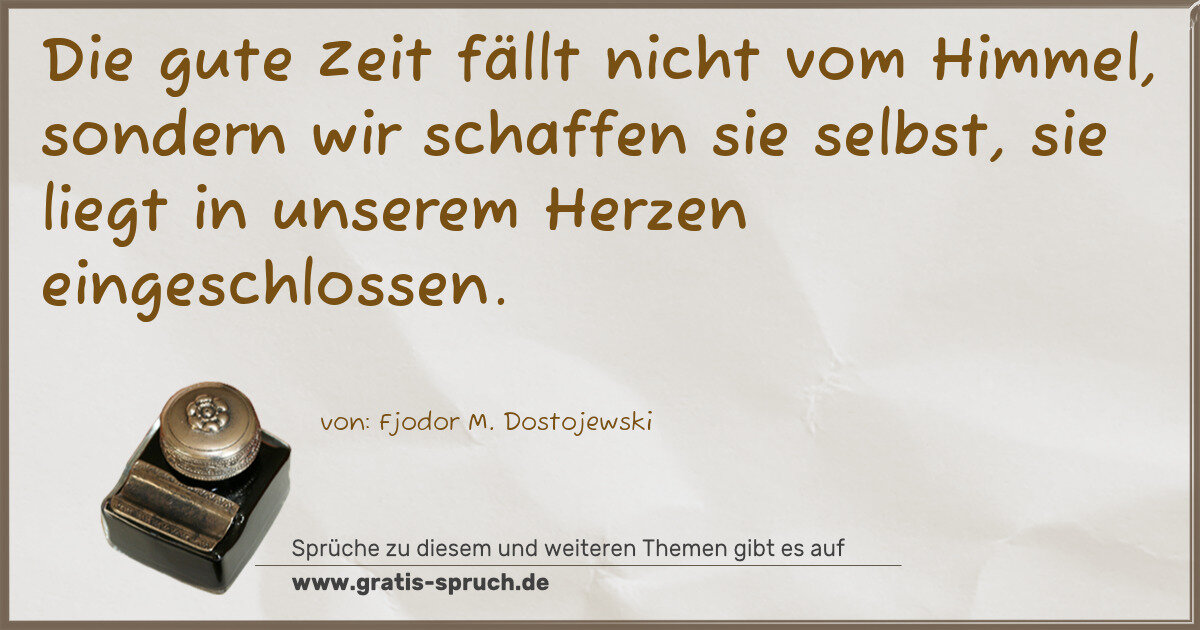Die gute Zeit fällt nicht vom Himmel, sondern wir schaffen sie selbst, sie liegt in unserem Herzen eingeschlossen.