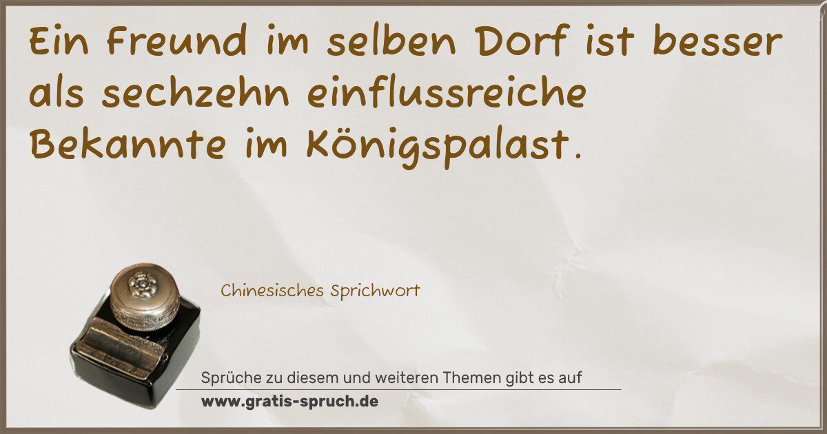 Ein Freund im selben Dorf ist besser als sechzehn einflussreiche Bekannte im Königspalast.