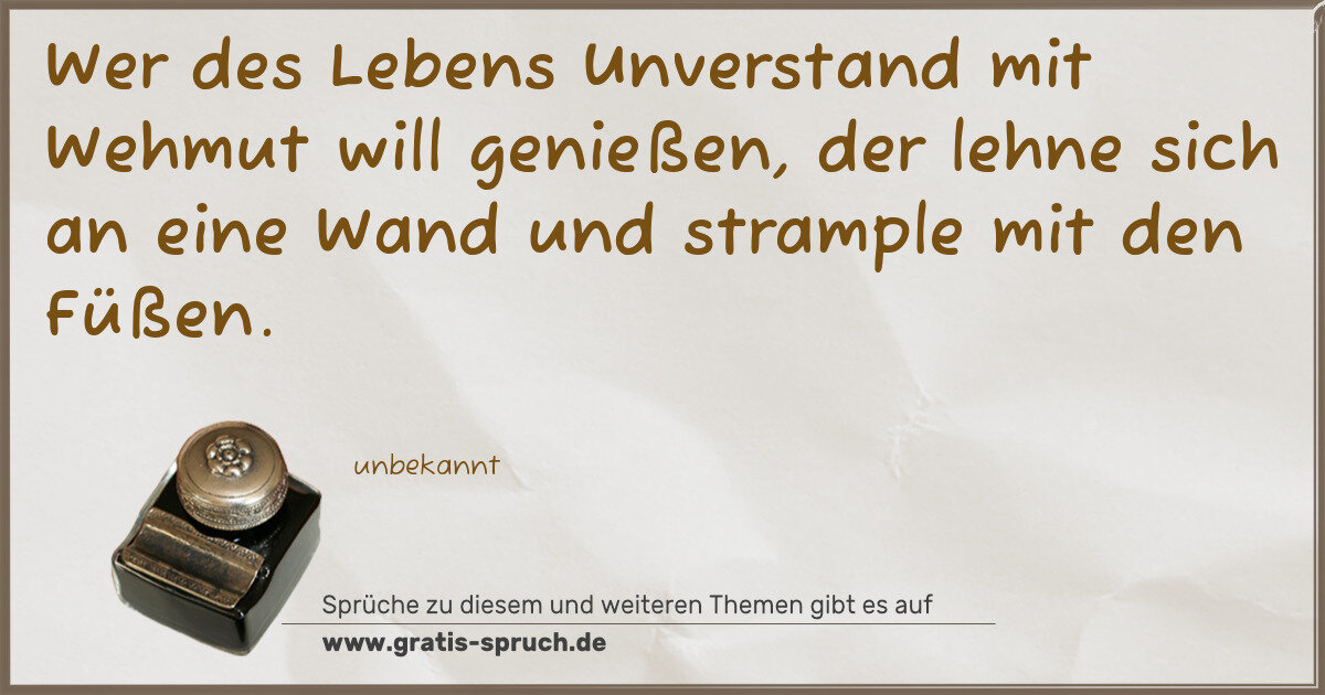 Wer des Lebens Unverstand mit Wehmut will genießen, der lehne sich an eine Wand und strample mit den Füßen.