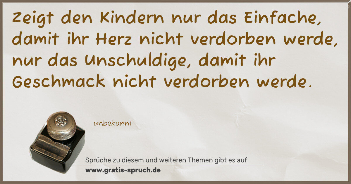 Zeigt den Kindern nur das Einfache, damit ihr Herz nicht verdorben werde, nur das Unschuldige, damit ihr Geschmack nicht verdorben werde.