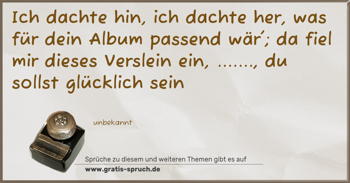 Ich dachte hin, ich dachte her, was für dein Album passend wär'; da fiel mir dieses Verslein ein, ......., du sollst glücklich sein