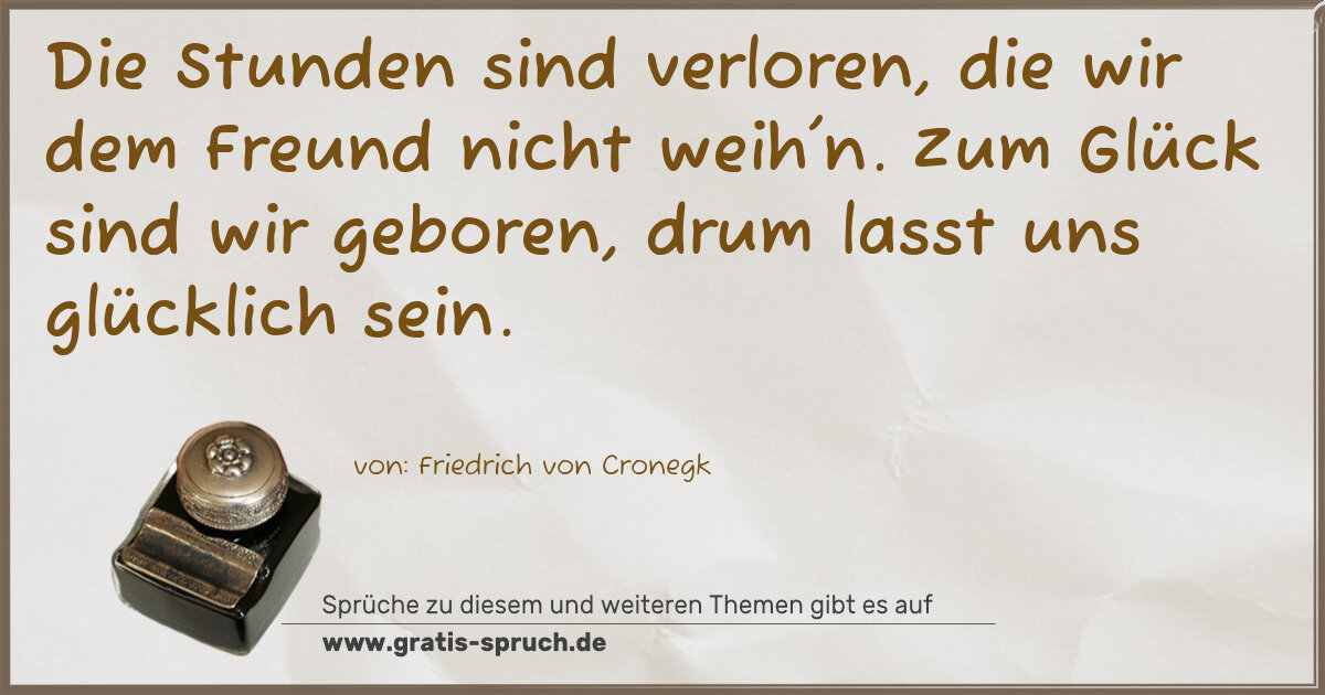 Die Stunden sind verloren, die wir dem Freund nicht weih'n. Zum Glück sind wir geboren, drum lasst uns glücklich sein.