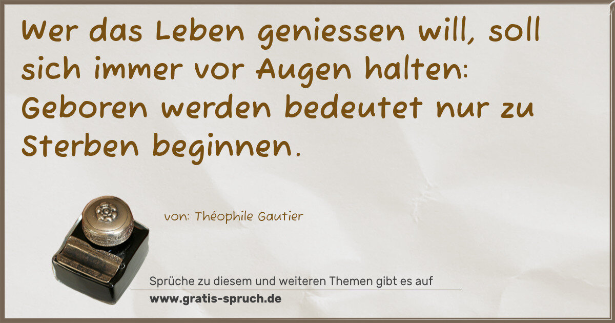 Wer das Leben geniessen will, soll sich immer vor Augen halten: Geboren werden bedeutet nur zu Sterben beginnen.