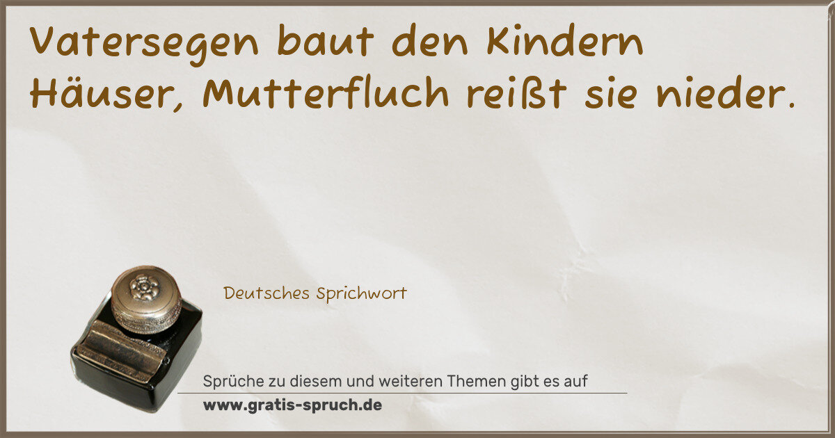 Vatersegen baut den Kindern Häuser, Mutterfluch reißt sie nieder.