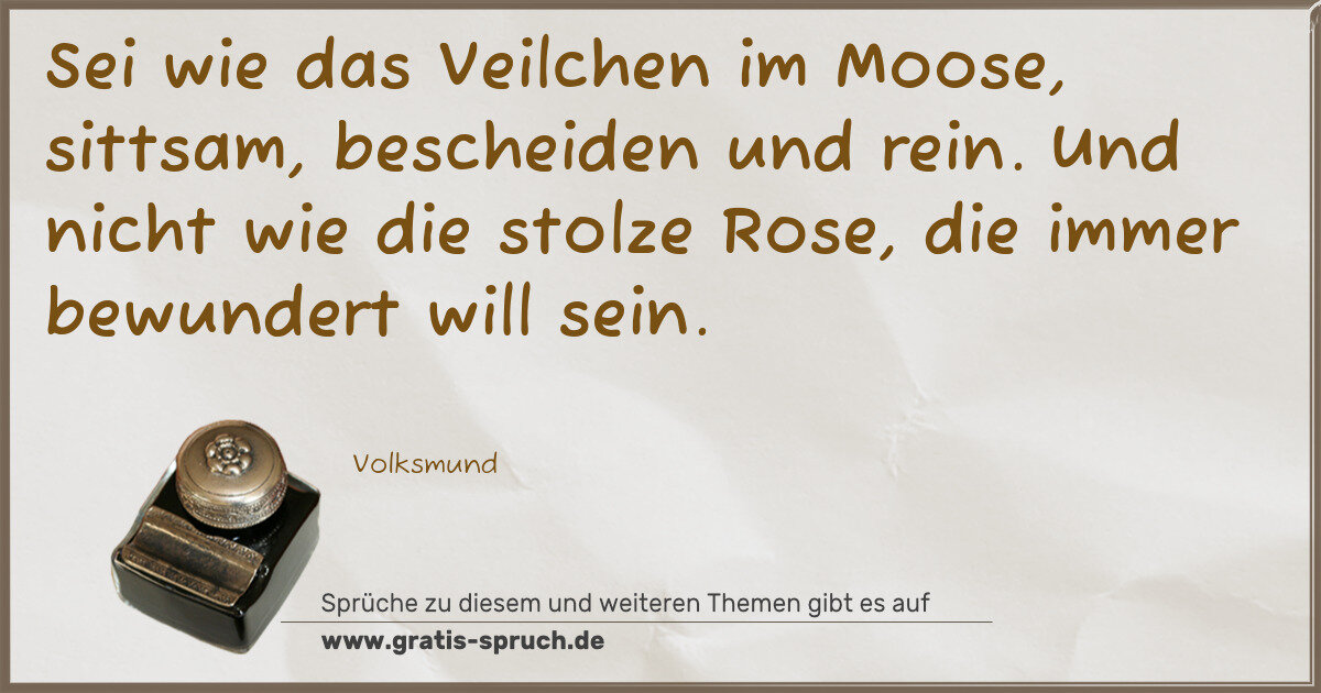 Sei wie das Veilchen im Moose, sittsam, bescheiden und rein. Und nicht wie die stolze Rose, die immer bewundert will sein.