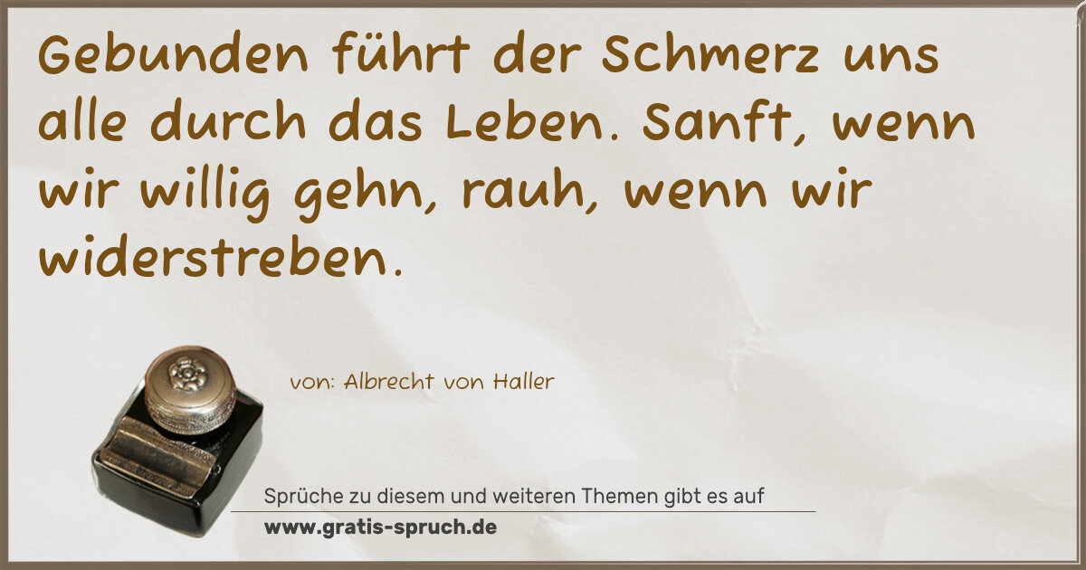 Gebunden führt der Schmerz uns alle durch das Leben. Sanft, wenn wir willig gehn, rauh, wenn wir widerstreben.