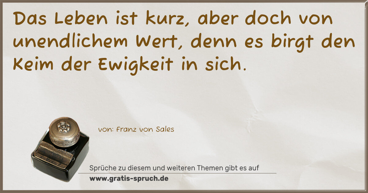 Das Leben ist kurz, aber doch von unendlichem Wert, denn es birgt den Keim der Ewigkeit in sich.