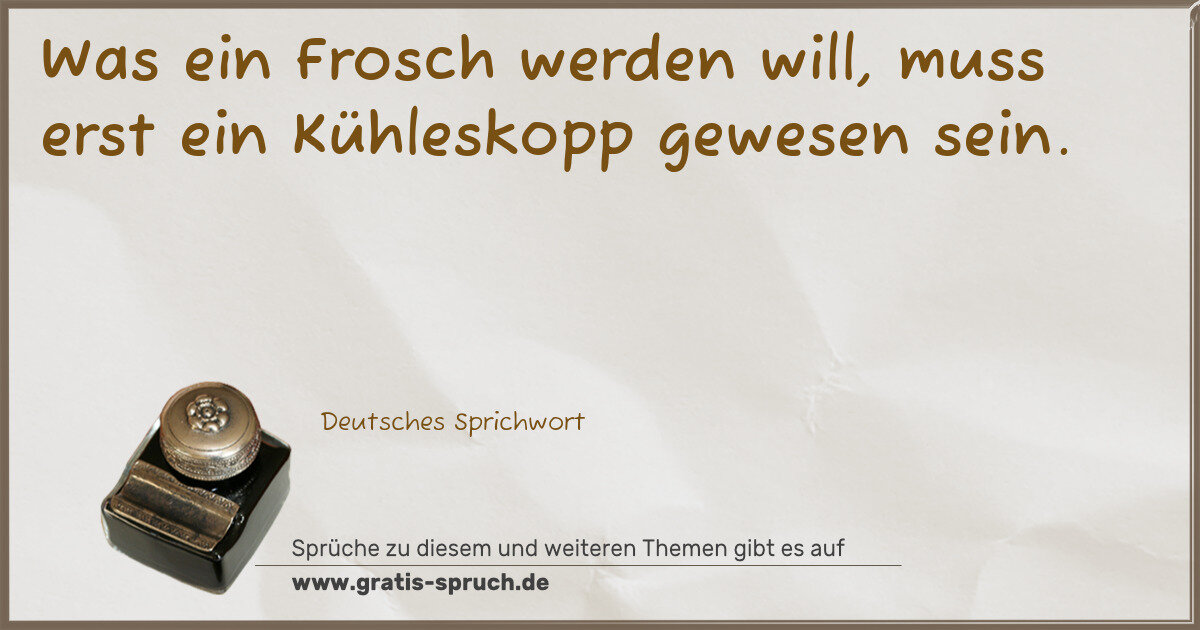 Was ein Frosch werden will, muss erst ein Kühleskopp gewesen sein.