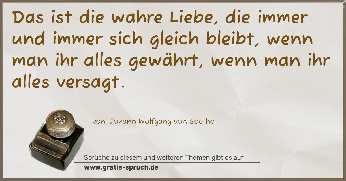 Das ist die wahre Liebe, die immer und immer sich gleich bleibt, wenn man ihr alles gewährt, wenn man ihr alles versagt.