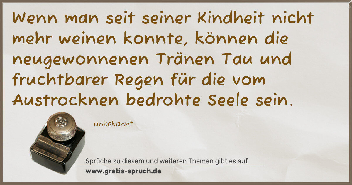 Wenn man seit seiner Kindheit nicht mehr weinen konnte, können die neugewonnenen Tränen Tau und fruchtbarer Regen für die vom Austrocknen bedrohte Seele sein.