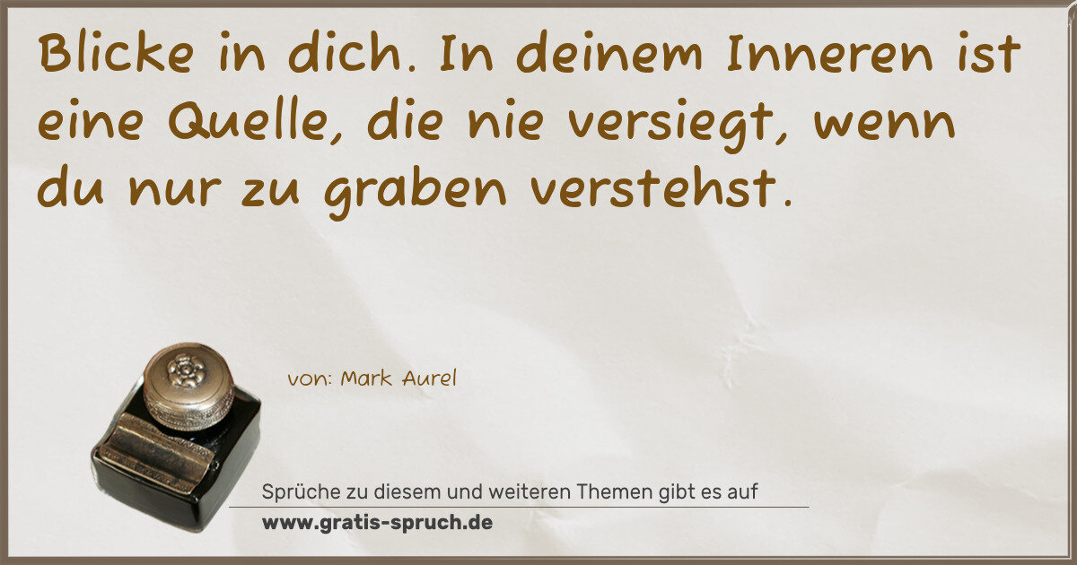Blicke in dich. In deinem Inneren ist eine Quelle, die nie versiegt, wenn du nur zu graben verstehst.