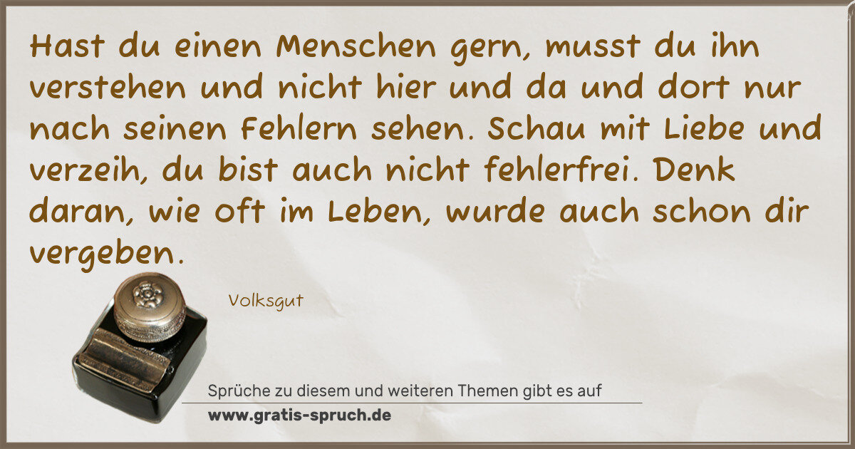 Schau mit Liebe und verzeih, du bist auch nicht fehlerfrei.