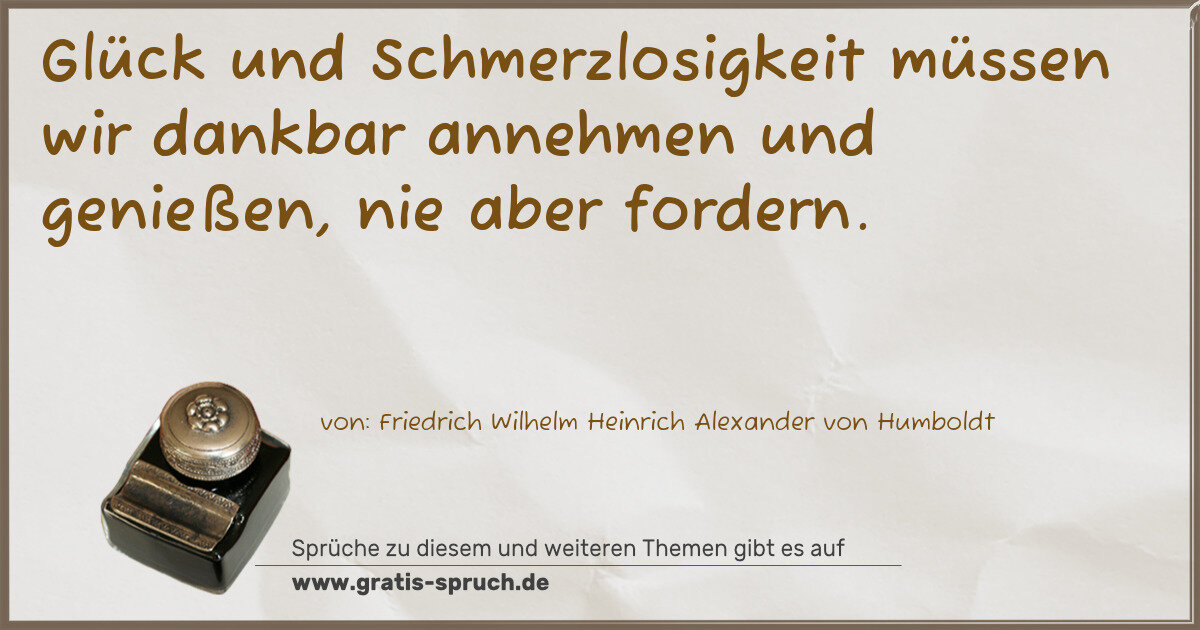 Glück und Schmerzlosigkeit müssen wir dankbar annehmen und genießen, nie aber fordern.