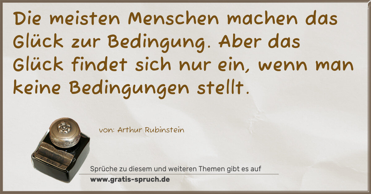 Die meisten Menschen machen das Glück zur Bedingung. Aber das Glück findet sich nur ein, wenn man keine Bedingungen stellt.