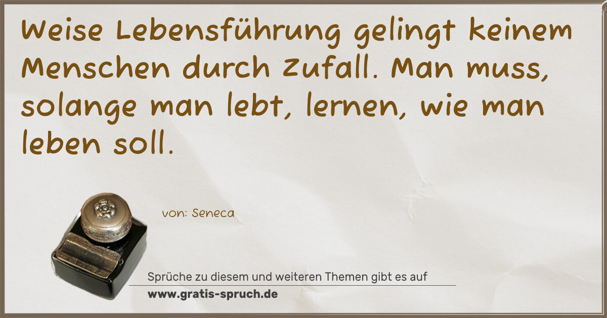 Weise Lebensführung gelingt keinem Menschen durch Zufall. Man muss, solange man lebt, lernen, wie man leben soll.